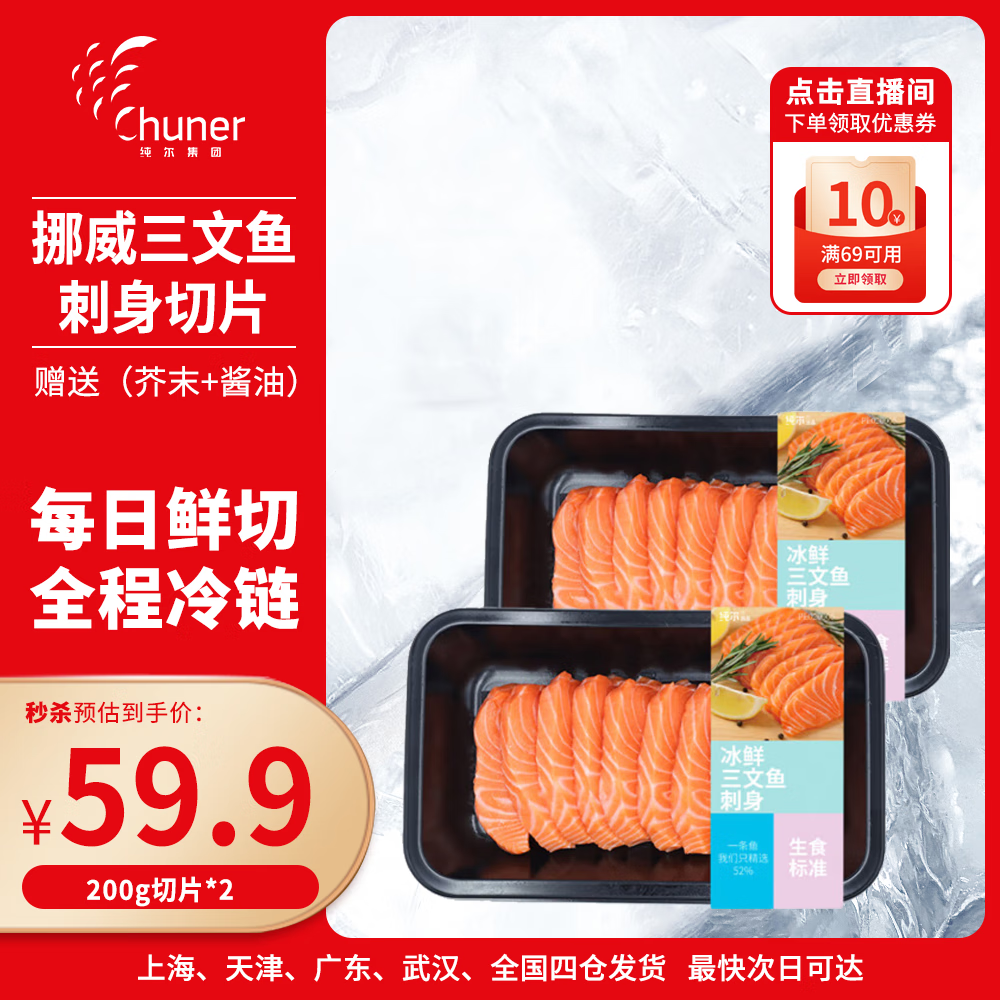 包邮 纯尔挪威三文鱼切片【冰鲜即食】净重200g*2 生鲜 源头直发 可生食